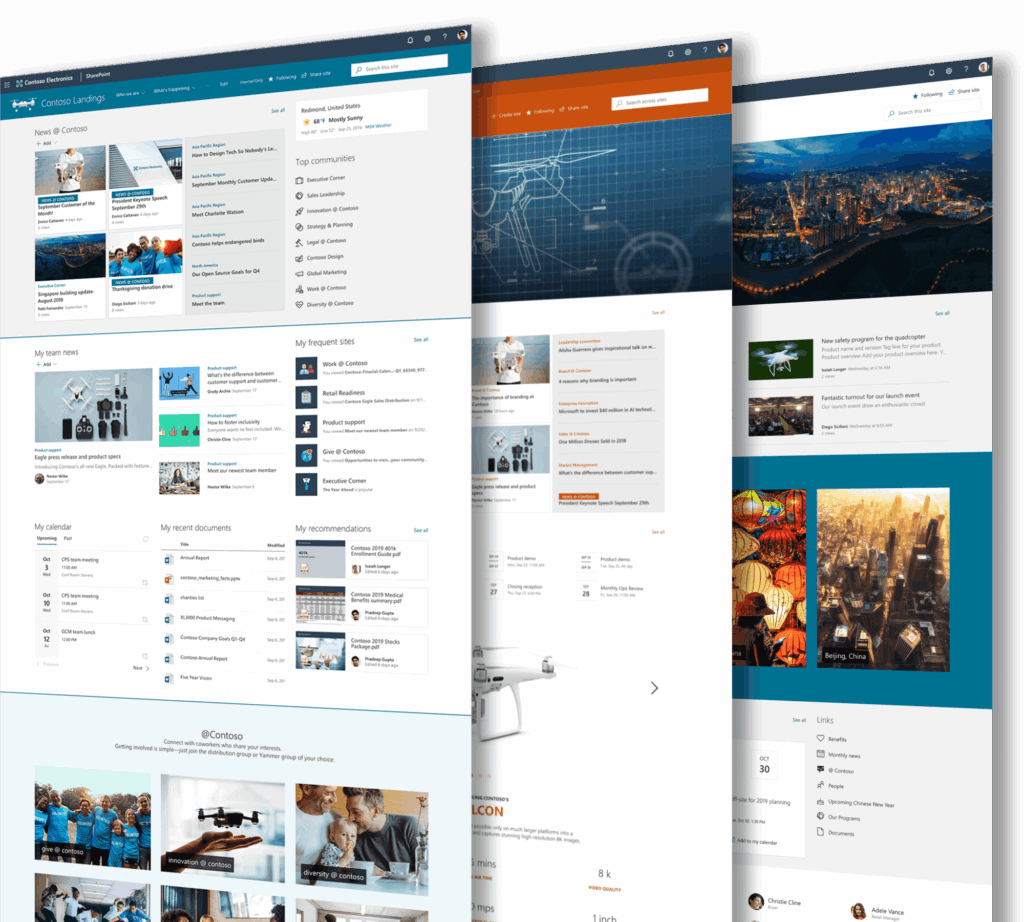 Intranetes weboldalak: szervezeten belüli kommunikáció hatékony eszköze, amelyen megoszthatók a friss hírek, információk, szervezeti naptár, általános tudnivalók, elérhetők a dokumentumtárak és listák. Az általános, belső kommunikációt célzó portál mellett külön weboldalak hozhatók létre csoportmunka támogatására a szervezeti egységek, munkacsoportok vagy akár projektek számára